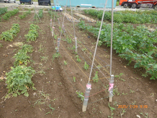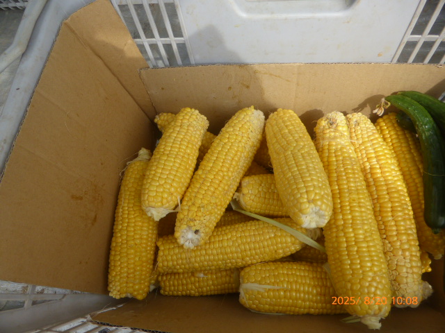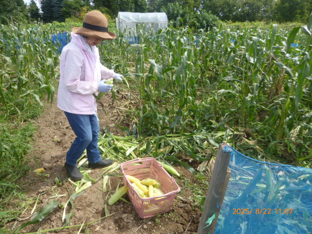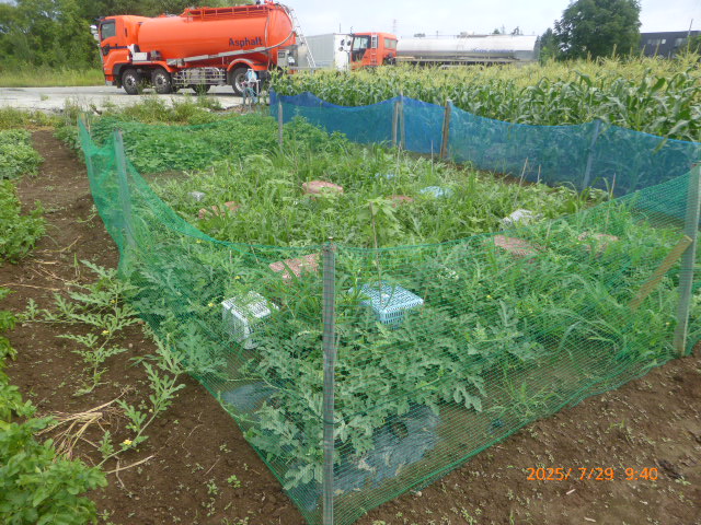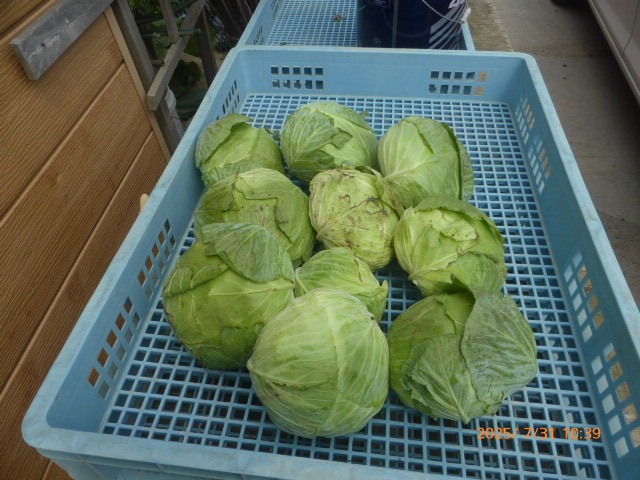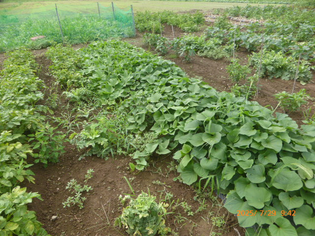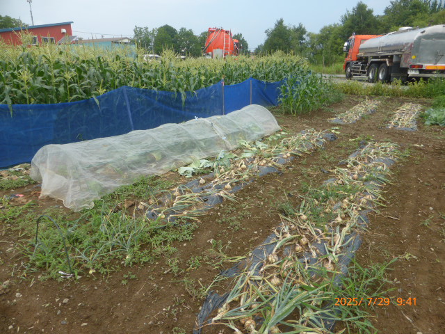 キャベツ:防虫ネットのおかげで虫食いは無かったが、水気無く固く非常に不味い。 トウモロコシ:密集して定植のせいもあり出来悪い。一部に狐の被害あり。 絹さや:実が付かず2回目植えたがこれもダメでした。 芋:物は素晴らしいが例年の3~4割の収量です。 玉葱:マルチシート栽培で如何にかテニスボール位の収穫。丘珠は玉葱栽培農家が多い地区で皆さんピンポン玉位で収穫諦めた畑が多いようです。 西瓜:ほぼ昨年並みの収穫。 枝豆・薩摩芋・・これから収穫、白菜・秋大根は定植したが? 来年以降もこのような地球温暖化の影響受けると考え、作付け方法などの再検討します。 |