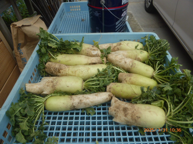 異常な高温少雨で畑仕事の難しさを体験しております。春大根:L甲斐聡の大根は素晴らしい出来ですが他は最悪。