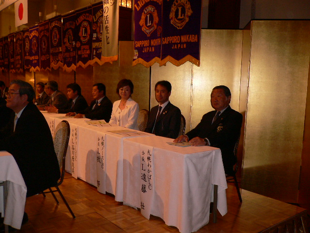 ライオンズクラブ国際協会331A地区 第2R 第1Z・第2Z 16クラブ合同 2011〜2012 地区ガバナーL庵原 宏章 公式訪問 2011年7月26日(火)札幌グランドホテルにて18:00開催されました。 札幌わかばライオンズクラブL渡部映里子の軽妙な司会で、会長L遠藤壮の開会宣言・ゴングで始まり、そして、地区ガバナーL庵原 宏章の運営方針が発表されました。
