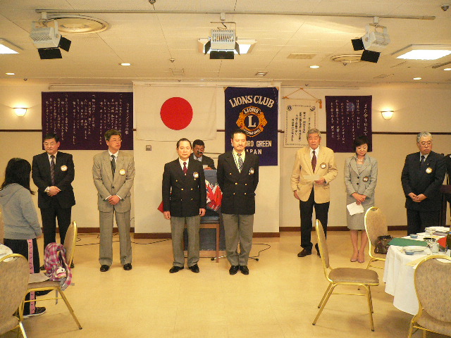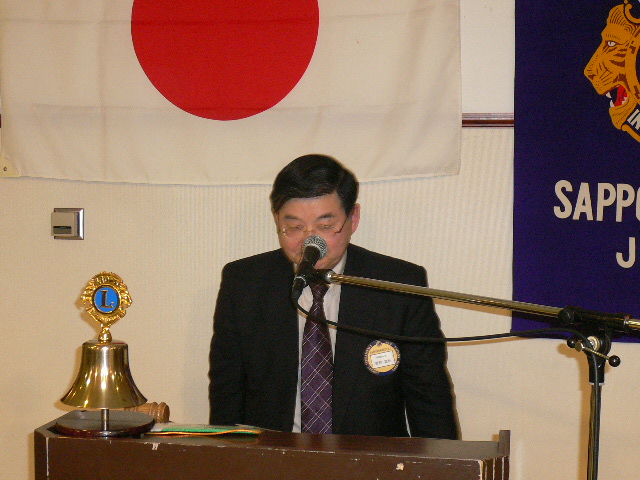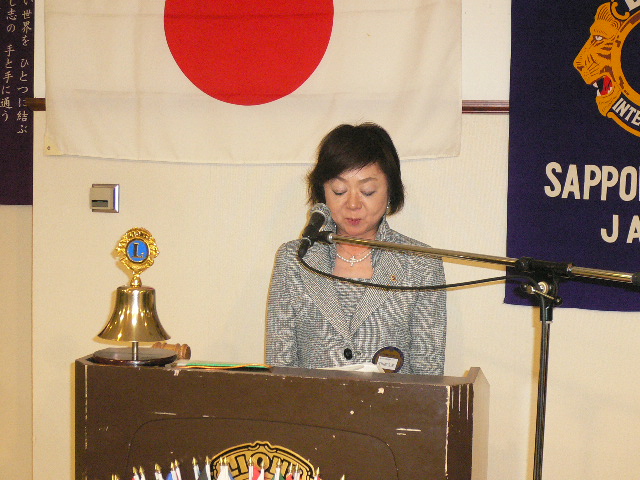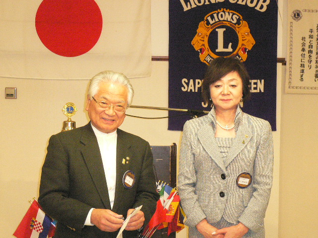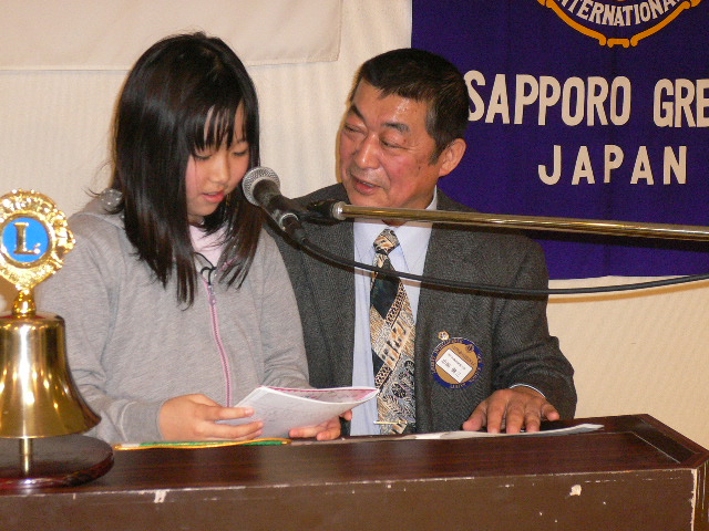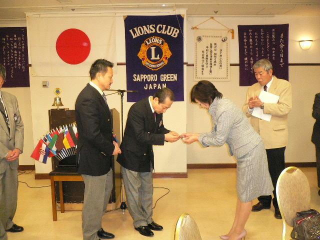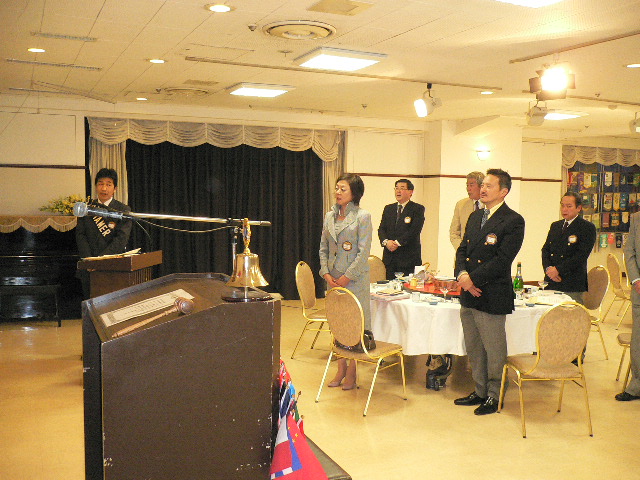 4月第一例会は新入会員入会式において6名の紹介が有りました。日韓親善青少年交流事業に 派遣された野呂花鈴さんが、交流について報告されました。
