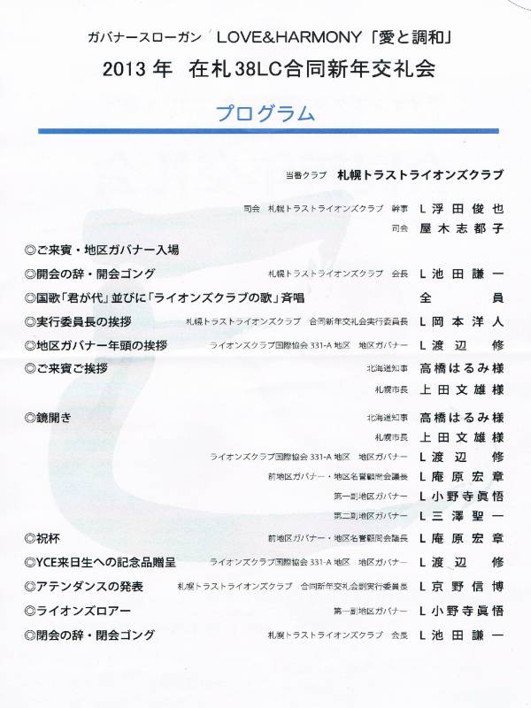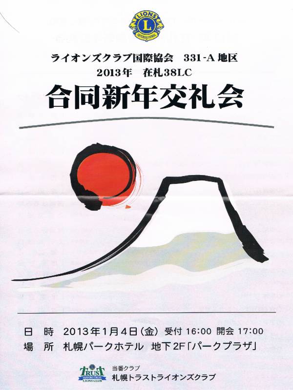 2013年在札38LC合同新年交礼会が1月4日17時よりパークホテル地下2Fパークプラザにて行われました。