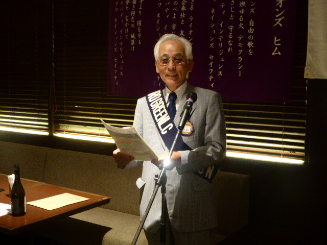 2015年8月28日(金)三 越9階ランドマーク 1.開会ゴング並びに会長挨拶 2.国歌「君が代」並びに「ライオンズヒムの歌」斉唱 3.“ライオンズの誓い”唱和 4.ゲストの紹介 接待委員 L忠海 健三 麻生保育園 園長 坪谷(つぼや) 雄(ゆう)介(すけ) 様 西野尾嘉拓税理士事務所 所長 西野(にしの)尾(お)嘉(よし)拓(ひろ)様 5.審議事項 1)森の教室決算について 2)100%例会(9/11)予算について 3)エコー誌11月号(リジョン特集)広告依頼について 4)「ゴミを拾って植樹をしようACT(9/6) ウィサーブ 6.幹事報告 1)第31回グリーン盟友連絡会議について(岩見沢グリーンLC) 2)薬物乱用防止教育認定講師養成講座について 3)ガバナー公式訪問(7/28)費用について 4)331-A地区 100周年記念事業チャリティゴルフ大会について 5)第54回OSEALフォーラムについて 6)331複合地区FWT(家族及び女性会員チーム)研修会について 7)第29回暴力追放総決起集会及び第1回北海道暴力団追放道民大会について 8)訃報のお知らせ 7.テール・ツイスタータイム 8.出席率の発表 9.“また会う日まで”斉唱 10.ライオンズ・ローア並びに閉会ゴング |