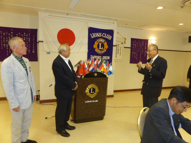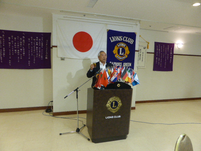札幌グリーンライオンズクラブ7月第1例会(スタート例会T 会長方針発表 通算第515回) 1、会長所信表明 会長方針:楽しい例会、ACTの継続について方針発表する 2、2015〜2016皆勤賞がL岡山 豊昌前会長とL山田 一男前会計に授与される 審議事項 1、引き継ぎと感謝の夕べ決算報告 2、委員会構成 3、運営日程 4、収支予算 以上承認される 「岡山せとうちCN30」旅行日程が幹事より発表される 10/28(金)12:30頃 千歳空港発⇒羽田乗り換え⇒16:00頃岡山着 10/29(土)11:30〜14:30式典・祝宴 ※16:40頃 岡山空港発⇒羽田乗り換え⇒千歳空港20:00頃着 10/30(日)翌日に観光又はゴルフのL ※16:40頃 岡山空港発⇒羽田乗り換え⇒千歳空港20:00頃着