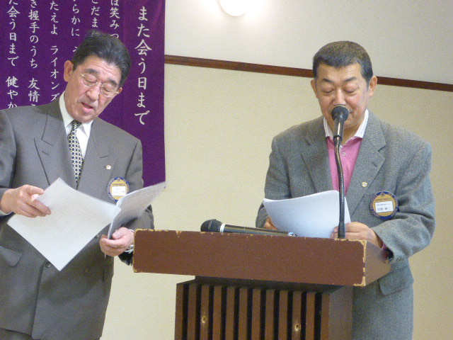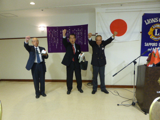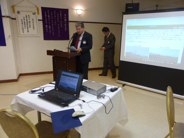 会長スローガン 慈悲の心と和の心 2016年10月14日三越ライラックにて 1、審議事項 1) 「温泉例会」決算報告 2) 「森の教室」決算報告 3) 千島桜基金収支中間報告 4) 岡山せとうちライオンオンズクラブCN30祝儀について 5) 事業所設置申請(労災保険等加入)について 以上提案通り承認される 2、幹事報告 1) 「新川並木つくり」植樹会について 10月16日(日)10時から手稲区前田森林公園駐車場に集合 2) アラートフォーラム「防災対策・減災対策セミナー」開催について 11月16日(水)15時〜17時 岩見沢サンプラザ 10月誕生ライオンにL岡田總会長より記念品贈呈 L岡田 總、L岡山 豊昌、L長土居 聰、L山崎 健作 ※ウイサーブに引き続き農園部会の活動報告が部会長L比護 了造がプロジェクターで行う。農園部会の枝豆、三升漬とL前田伏樹より京都の豆腐が提供される。 | |||||||||||||||||