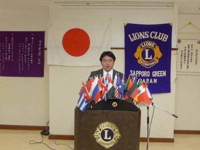 札幌グリーンライオンズクラブ11月第2例会 (3役担当 通算524回) 会長スローガン 慈悲の心と和の心 2016年11月25日 三越4階ライラックにて 1) "2015〜2016年度会員増強目標達成及び$250寄付達成バッチ" :前会長L岡山 豊昌に贈呈される 2) 「2016年送る家族会」 " 日時 :12月13日(火) 受付17:00〜 開始18:00〜 場所 :東急REIホテル(旧東急イン) 会費 :L・LL8,000円 ゲスト・中高生7,000円 小学生4,000円 幼児無料 〆切 :11月30日" 3) "LCIF献金 百周年記念事業食料支援へ:$20(@105)*31名=65,100円拠出する" 4) "眼鏡リサイクル収集事業:109本キャビネット事務局へ提出する " 以上会長、幹事より報告される 《お食事タイム》 接待名人L忠海 健三スピーチ 今まで訪問した数多くのグリーン盟友・フォーラム及び姉妹提携岡山せとうちライオンズクラブより受けた、心こもった接待について面白可笑しい話があり、場が大いに盛り上がりました。 | |||||||||||||