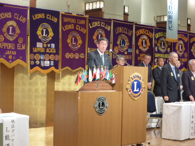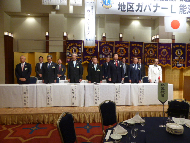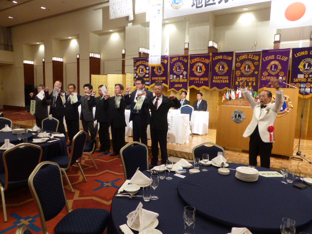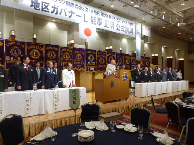 (通算第541回) 会長スローガン 豊かな心で、奉仕活動を 公式訪問式次第 ◆ 地区ガバナー入場 1 . 開会宣言並びにゴング 札幌グリーンライオンズクラブ会長 L 前田 伏樹 2 . 「国歌」並びに「ライオンズクラブの歌」斉唱 全 員 3 . 「ライオンズの誓い」唱和 札幌グリーンライオンズクラブ元会長 L 山本 弘詔 4 . 地区ガバナー並びに地区役員の紹介 第2R 第2Z ゾーン・チェアパーソン L 岡山 豊昌 5 . 出席クラブ並びに会長の紹介 第2R 第1Z ゾーン・チェアパーソン L 内山 謙士郎 6 . 地区ガバナー歓迎のことば 札幌グリーンライオンズクラブ会長 L 前田 伏樹 7 . 地区ガバナープロフィール紹介 第2R 第2Z ゾーン・チェアパーソン L 岡山 豊昌 8 . 地区ガバナー挨拶地区ガバナー L 能澤 正明 9 . 地区ガバナーと各クラブ会長による記念品交換 1 0 . キャビネット幹事報告 キャビネット幹事 L 堂畑 時雄 1 1 . 閉会宣言並びにゴング 札幌グリーンライオンズクラブ会長 L 前田 伏樹 懇親会 1 . 開会の辞 札幌グリーンライオンズクラブ第一副会長 L 浅水 正 2 . 副地区ガバナーご挨拶 第一副地区ガバナー L 荒井 喜和 3 . ウィ・サーブ 元地区ガバナー・地区名誉顧問 L 春野 守夫 4 . 会 食 5 . 「また会う日まで」斉唱 6 . ライオンズ・ローア 第二副地区ガバナー L 鈴木 善一 7 . 閉会の辞 地区ガバナー公式訪問実行委員長 L 大塚 周雄 ◆ 地区ガバナー退場