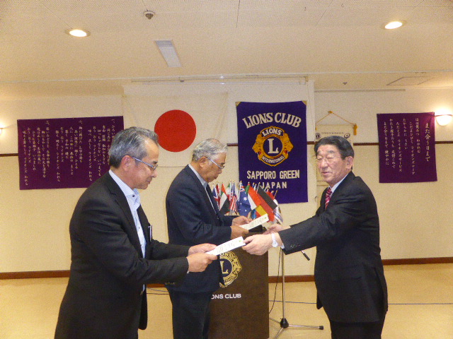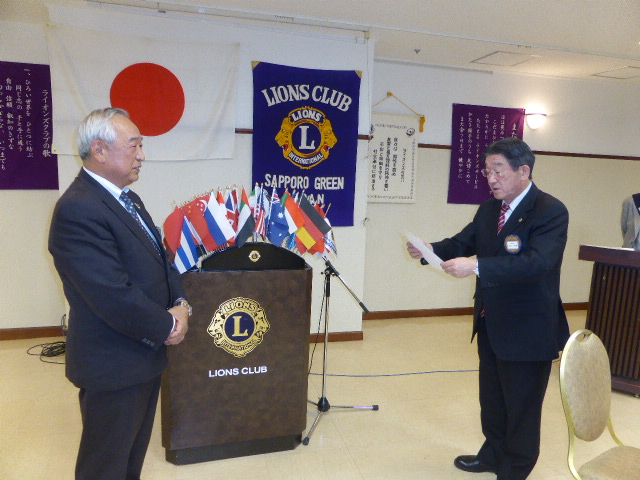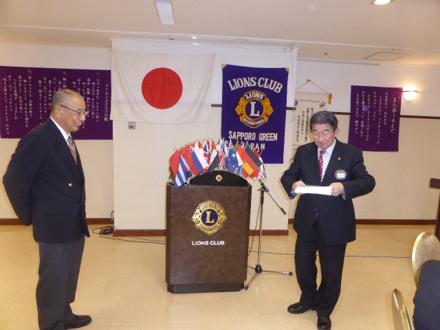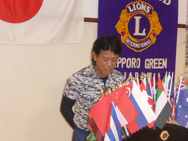 札幌グリーンライオンズクラブ10月第1例会 スタート例会T 会長方針発表(通算第545回) 会長スローガン 《豊かな心で、奉仕活動を》 2017年10月13日(金) 三越4Fライラック T審議事項 1、「森の教室」決算報告 青少年委員長L山田 一男 2、「中島公園樹名板点検例会」予算案 実行委員長L大塚 周雄 1、2議案承認される 3、「100周年記念地区特別事業」協賛企業 会長L前田 伏樹 L前田 伏樹、L竹内 信也、L忠海 健三、L山田 一男(大和家)の各企業に決まる U10月27日第二例会について 社会福祉委員長L山本 弘詔 興正学園副施設長を迎えての例会に変更 VゾーンチャーパーソンL岡山 豊昌の講話 ガバナー方針、2R2Z各クラブのACT、「100周年記念事業」 仕事探検教室」などについて資料に基づき詳細なお話 Wゾーン委員L工藤 修の挨拶 各クラブの出席率とメークアップについて X幹事報告 幹事L竹内 信也 1、小学生向けネットマナー講座講師養成セミナーについて 出席者:L工藤 修 2、2017年度FWTセミナーについて 出席者:L工藤 修 3、「アラートフォーラム」について 出席者:L大塚 周雄 4、「100周年記念特別合同例会(1・2・3・6R)」開催について