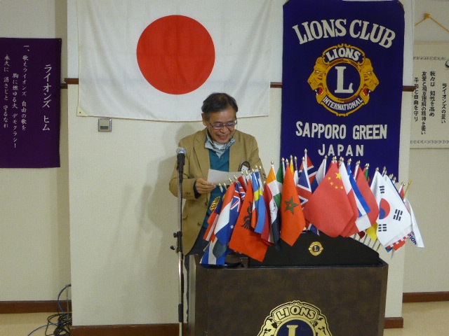 札幌グリーンライオンズクラブ11月第2例会 (3役担当例会 通算第548回) 会長スローガン 《豊かな心で、奉仕活動を》 2017年11月24日(金)18:15 三越4階ライラック 1.開会ゴング並びに会長挨拶 会長 L前田 伏樹 2.国歌「君が代」並びに「ライオンズヒムの歌」斉唱 3.“ライオンズの誓い”唱和 4.審議事項 1)2018〜2019年度第二副地区ガバナー候補推薦について 会長 L前田 伏樹 2)中島公園樹名板例会決算報告 実行委員長 L大塚 周雄 3)「エコー誌」年賀名刺広告掲載について 会長 L前田 伏樹 広告料 1クラブ 10,000円 広告サイズ 約20mm×60mm 掲載内容 ○クラブ名 ○会長、幹事、会計、PR委員長の各ライオン名 ○会長スローガン 4)2017〜2018年度LCIF献金の協力依頼について LCIFコーディネイター L岡田 聰 11月はLCIF献金月 全会員20$献金 LCIF今期重点目標 「はしか イニシアチブ」 20$×113円×31名=70,060円 5)リサイクル眼鏡寄付金について 会長 L前田 伏樹 眼鏡1つにつき50円の寄付 70本×50円=3,500+送料950円+振込手432=4,882円 5、会員スピーチ 「終活セミナー」 L 大塚 周雄 6.第56回台南フォーラムの報告 会長 L前田 伏樹 7.アラートフォーラムの報告 L大塚 周雄 8.幹事報告 幹事 L竹内 信也 1)高槻グリーンライオンズクラブCN30周年について 2)ライオン誌発送 送料値上げについて 2017年下半期より値上げ 現在 460円(全地域) 値上げ後 9〜30冊 496円 31〜100冊 507円