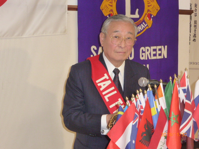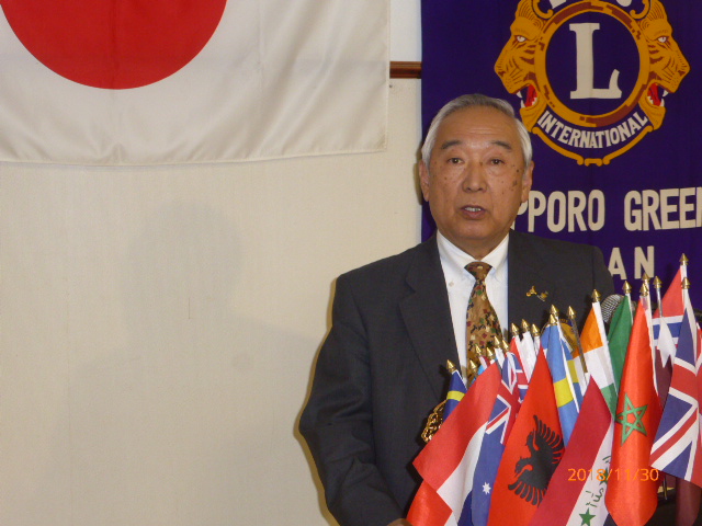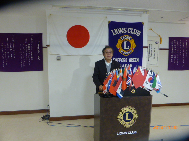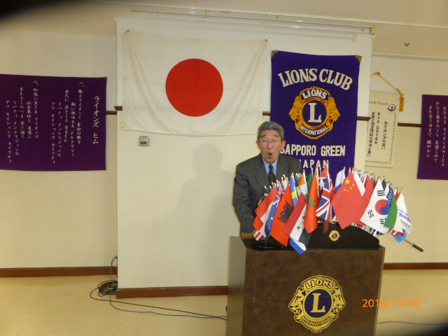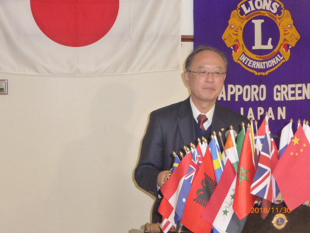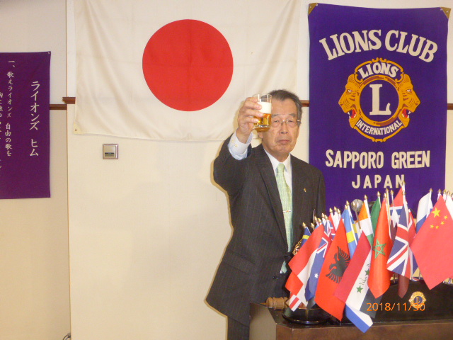 札幌グリーンライオンズクラブ11月第2例会(3役担当例会 通算第572回) 会長スローガン 未来と平和にウィサーヴ 2018年11月30日(金)18:15於:三 越4 階ライラック 1.開会ゴング並びに会長挨拶 会長 L浅水 正 2.国歌「君が代」並びに「ライオンズクラブの歌」斉唱 3.ライオンズの誓い唱和 4.2019〜2020年度 第一副地区ガバナー候補者推薦について 会長 L浅水 正 5.LCIFプログレスピン・ライオンズサポーターピン授与 会長 L浅水 正 6.LC国際協会331-A地区 地区ガバナーL荒井よりガバナーピン授与 会長 L浅水 正 7.2017〜2018年度 会員満足度向上アワード授与 会長 L浅水 正 8.「Green Seeder」認定書授与 会長 L浅水 正 9.青少年意見発表大会委員会報告 青少年委員長 L前田 伏樹 10.2018年を送る家族会委員会報告 実行委員長 L工藤 修 11.GST&FWT合同 糖尿病予防啓発セミナーの報告 L岡山 豊昌 12.社会福祉セミナーの報告 L岡山 豊昌 13.幹事報告 幹事 L甲斐 聡 1)エコー誌年賀名刺広告について 14.その他 15.テール・ツイスタータイム テール・ツイスター L山本 弘詔 16.出席率の発表 会員委員長 L山口 雅徳 17. “また会う日まで”斉唱 18.ライオンズ・ローア並びに閉会ゴング 会長 L浅水 正