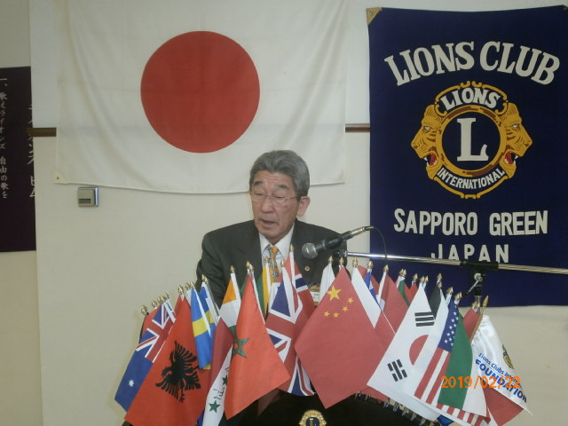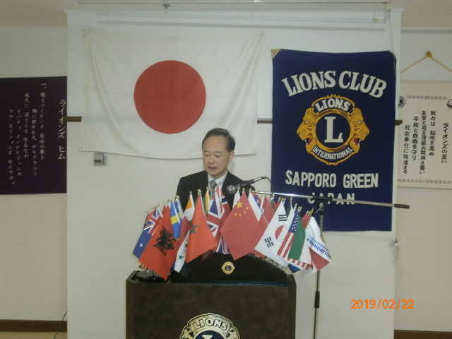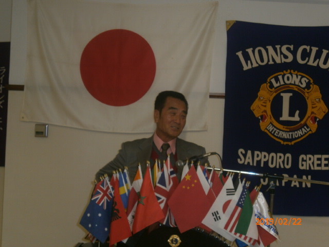 札幌グリーンライオンズクラブ2月第2例会(通算第578回) 会長スローガン 未来と平和にウィサーヴ 2019年2月22日(金)18:15於:三 越4 階ライラック 1.開会ゴング並びに会長挨拶 会長 L浅水 正 2.国歌「君が代」並びに「ライオンズクラブの歌」斉唱 3.ライオンズの誓い唱和 4.審議事項 1)キャンペーン100モデルクラブ申請書について 会 長 L浅水 正 5.青少年意見発表大会の結果報告について 青少年委員長 L前田 伏樹 6.興正学園自立支援報告について 社会福祉委員長 L林 隆志 7.幹事報告 幹事 L甲斐 聡 1)札幌赤レンガLCCN15記念式典・祝賀会について 2)FWT「女性交流会」開催について 3)第3回地区ガバナー諮問委員会について 8.その他 9.テール・ツイスタータイム テール・ツィスター L山本 弘詔 10.出席率の発表 会員委員長 L山口 雅徳 11.“また会う日まで”斉唱 12.ライオンズ・ローア並びに閉会ゴング 会 長 L浅水 正 | |||||||||||||||||