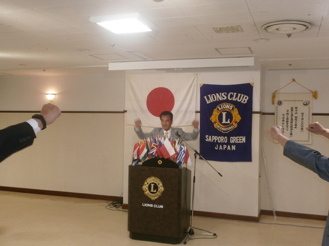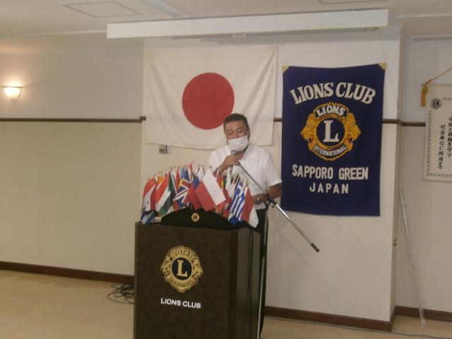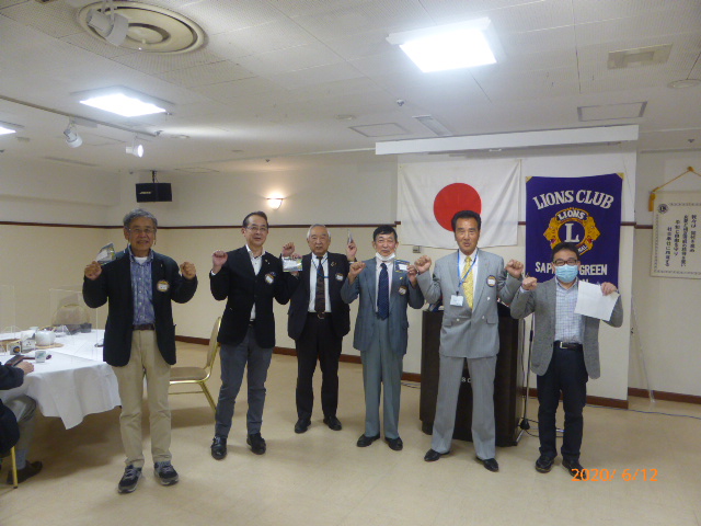 札幌グリーンライオンズクラブ6月第1例会 (通算第605回) 会長スローガン 夢と情熱そして勇気にウィサーヴ 2020年6月12日(金) 18:15於:三越4階ライラック 1.開会ゴング並びに会長挨拶 会長 L竹内 信也 2.国歌「君が代」並びに「ライオンズクラブの歌」斉唱 3.“ライオンズの誓い”唱和 4.審議事項 1)引き継ぎと感謝の夕べ予算案について 実行委員長 L浅水 正 2)賛助会員L池田佳奈美 退会について 3)例会費・事業費について 会計 L岡山 豊昌 5.LCIF国際理事よりアワード受賞 第一副会長 L工藤 修 6.LCIFキャンペーン100 アワードピンの授与 7.幹事報告 幹事 L忠海 健三 1)2019〜2020年度アワード 〔331―A地区ガバナーズアワード〕 ・LCIF推進活動 最優秀賞 ・LCIFキャンペーン100推進活動 優秀賞 ・環境保全・アラート推進活動 優秀賞 ・GST推進活動 優秀賞 ・マーケティング・コミュニケーション活動 優秀賞 ・情報テクノロジー推進 優秀賞 〔LCIF理事長感謝状〕 〔優秀会員表彰〕 25年 L山田一男 40年 L山本弘詔 2)クラブ新3役・マーケティング・コミュニケーション委員長セミナーについて 3)クリーンアップ石狩新港浜中止について 4)岡山せとうちライオンズクラブご祝儀について 5)LCIF国際会長よりクラブ会員へピンを頂く 8.ウイサーブ 2R2Z ゾーン・チェアパーソン L太田 治彦 9.テール・ツイスタータイム テール・ツィスター L山口 雅徳 10.出席率の発表 会員委員長 L岡山 豊昌 11.閉会ゴング 会長 L竹内 信也