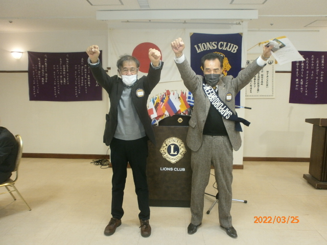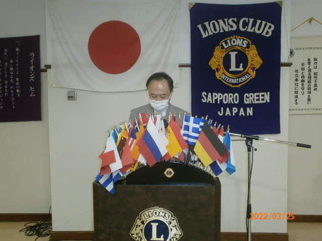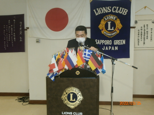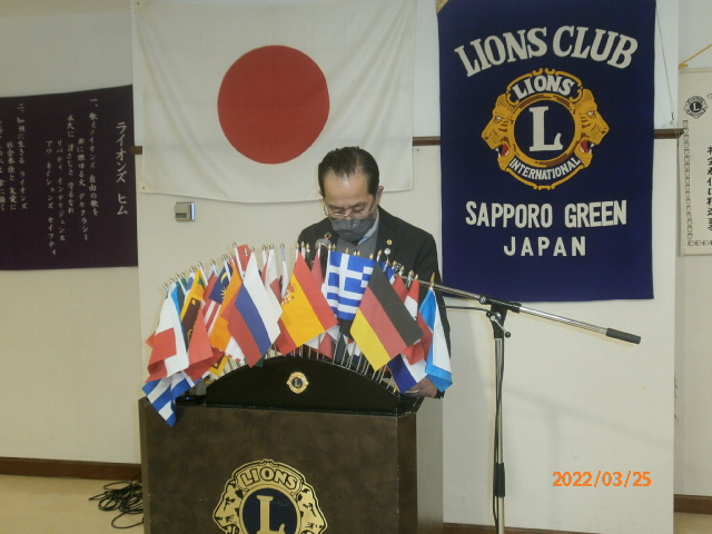 1月14日、賛助会員として入会された琴似大和家さんで開催して以来久々の例会でした。因って議題が盛り沢山でしたが全ての審議事項についてご承認戴きました。ありがとうございました。 今回特筆すべきは2点。一つは昨年10月に計画されていましたがコロナで延期になり、6月第一週に催される姉妹提携クラブ‘岡山せとうちCN35の案内。 もう一つはテールツイスターL山田から「前例にありませんが特別に発表します。」との前振りでL高野から20数万円のドネーション報告がありました。加えてご出席Lの皆様からも通常例会より多額のドネーション戴きました。 目標ドネーション額未達を覚悟し、水面下で切腹の声もあろうか???その言い訳として「昨年黒字と合わせ技で何とかトントン」と言おうか考えていました。何とか一息つけそうです。ありがとうございました。 札幌グリーンライオンズクラブ3月第2例会 (次期役員指名例会 通算第638回) 会長スローガン 健やか グリーン 2022年3月25日(金)於:三越ライラック 18:15 1.開会ゴング並びに会長挨拶 会長 L工藤 修 2.国家「君が代」並びに「ライオンズヒムの歌」斉唱 コロナ感染予防の為、斉唱お控えください。 3.“ライオンズの誓い”唱和 コロナ感染予防の為、唱和はお控えください。 4.審議事項 1)上半期決算報告(2021年7月〜12月)について 会計 L高野 倫行 2)上半期会計監査報告について 会計監査 L甲斐 聡 3)2022年1月新年例会決算報告について 実行委員長 L山口 雅徳 4)地区LCIFキャンペーン100について 幹事 L大塚 周雄 5)ウクライナ侵攻による避難民・難民の支援について 幹事 L大塚 周雄 6)第26回青少年意見発表大会の開催日及び会場について 青少年委員長 L忠海 健三 ・第25回青少年意見発表大会優秀賞のリポートについて ・来期第27回の青少年意見発表大会日程について 7)第68回地区年次大会代議員の選出について 幹事 L大塚 周雄 8)LC合同事務局内Wi-Fi交換について 会長 L工藤 修 5.次期指名委員会報告 指名委員長 L甲斐 聡 6.ZC制度変更について 会長 L工藤 修 7.姉妹クラブ 岡山せとうちLC CN35について 姉妹クラブ委員長 L忠海 健三 8.興正学園自立支援の感謝のお手紙 社会奉仕委員長 L谷川原友美 9.社協と331A がボランティアセンター締結について 会長 L工藤 修 10.アワードピンとマイルストーン・シェブロン贈呈 及びLCIFキャンペーン100の授与 35年 L竹内信也 会長 L工藤 修 11.幹事報告 幹 事 L大塚 周雄 1)札幌北の杜ライオンズクラブCN15記念式典について 2)2022年第8回スペシャルオリンピックス日本(SON) 3)新結成クラブについて クラブ名: 札幌インフィニティライオンズクラブ R・Z:331A 地区 1R2Z スポンサークラブ名: 札幌中島ライオンズクラブ 4)「コロナに負けるな!子ども笑顔応援プロジェクト」について 12.その他 1)3/25(金)環境保全セミナー例会は延期で4月以降予定。 2)4月22日花見・100%例会は琴似大和家18:30予定。 13.テールツイスタータイム テール・ツイスター L山田 一男 14.出席率の発表 会員委員長 L浅水 正 15.“また会う日まで” 斉唱はお控えください 16.閉会ゴング 会長 L工藤 修 |