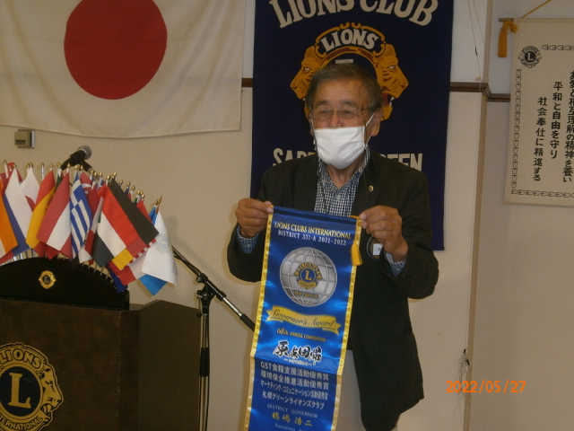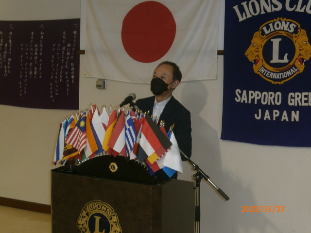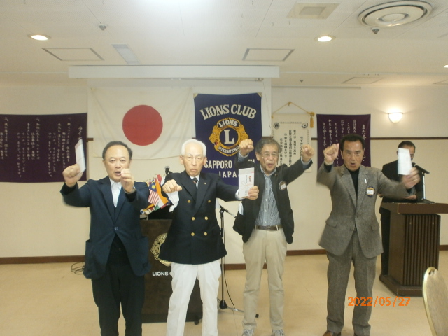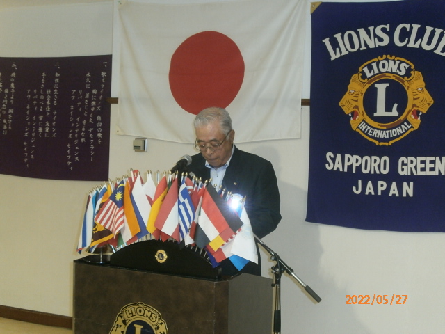 札幌グリーンライオンズクラブ5月第二例会(通算第642回) 会長スローガン 「健やかグリーン」 "昨日より明日を良く" 2022年5月27日(金)18:15於:三越ライラック 1.開会ゴング並びに会長挨拶 会長 L工藤 修 2.国歌「君が代」並びに「ライオンズヒムの歌」斉唱 3."ライオンズの誓い"唱和 4.審議事項 1)花見例会・100%例会の決算について 実行委員長 L浅水 正 2)引継ぎと感謝の夕べの予算案について 実行委員長 L竹内 信也 3)L西野尾嘉拓・L谷川原友美・L林隆志の退会について 会長 L工藤 修 4)来期 環境保全委員長・青少年副委員長・副ライオンテーマについて 5.チシマザクラ苗木頒布・募金活動報告について 環境保全委員 L比護 了造 4月23日(土) 24日(日) 獲得募金額 20,356円 6.2022〜2023年度 2R事前諮問会議について 次期2R2Z副ゾーン・チェアパーソンL工藤 修 7.幹事報告 幹事 L大塚 周雄 1)2021〜2022年度アワード報告 [331―A地区ガバナーズアワード] ・GST食糧支援活動 優秀賞 ・環境保全推進活動 優秀賞 ・マーケティング・コミュニケーション活動 優秀賞 [国際アワード] ・国際会長感謝状 L大塚周雄 ・LCIFアワード 国際感謝状(2021.6月達成) L高野 倫行 [優秀会員表彰] ・20年 L小松 隆 ・30年 L高野 倫行 ・30年 L浅水 正 ・35年 L竹内 信也 [LCIF表彰] ・モデルクラブ表彰 300% 認証状 2)東京レガシーハーフマラソン2022ご寄付・チャリティランナー募集について 3)札幌羊ヶ丘LC NC35記念式典並びに祝賀会中止について 4)「ひとり親家族 食糧支援アクティビティ」・ 「コロナに負けるな!子ども応援プロジェクト」感謝状 5)高槻グリーンライオンズクラブ (来期35周年) 「留学生女子弁論大会・ちびっ子ラグビー支援」チャリテイーゴルフ大会について 6)「第68回地区年次大会開催記念一般財団法人 日本ライオンズチャリティゴルフコンペ」について 8.その他 1)北海学園札幌高等学校 大西校長退任について 2)青少年意見発表大会出席可能者は6/6より健康シートへ記入し持参してください。 9.テール・ツイスタータイム テール・ツィスター L山田 一男 10.出席率の発表 会員委員長 L浅水 正 11."また会う日まで"斉唱 12.ライオンズ・ローア並びに閉会ゴング 会長 L工藤 修 |