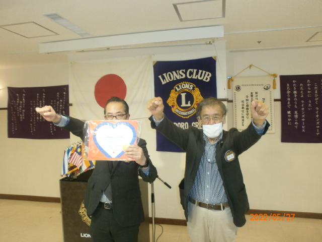 | L高野にLCIFアワードと国際会長感謝状 |