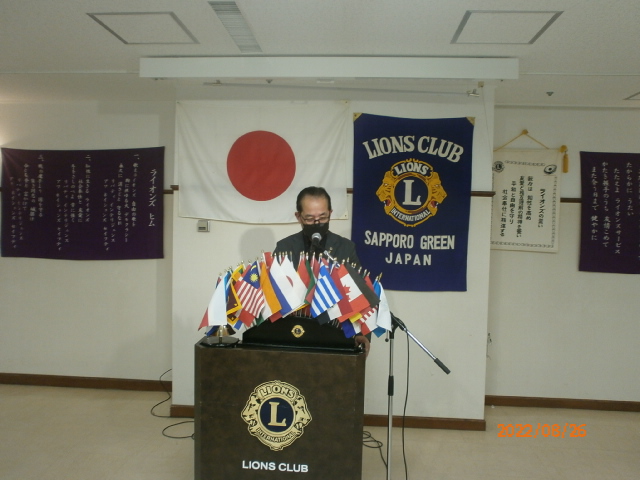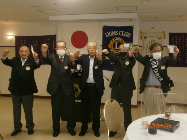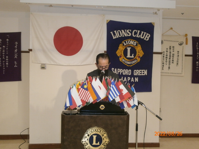 札幌グリーンライオンズクラブ7月第2例会 (通算第648回) 会長スローガン 「Let's Enjoy」 "緑を愛し、地球環境を大切に!" 2022年8月26日(金)18:15 於:三越4階ライラック 1. 開会ゴング並びに会長挨拶 会長 L山口 雅徳 2.国歌「君が代」並びに「ライオンズクヒムの歌」 斉唱 感染防止の為、マスクを着けてお願いします。 3.”ライオンズの誓い”唱和 感染防止の為、マスクを着けてお願いします。 4.審議事項 1)2021年7月〜2022年6月決算報告と剰余金の処分について 前会計 L高野 倫行 2)2021年7月〜2022年6月会計監査報告 前会計監査 L山本 弘詔 3)姉妹クラブ岡山せとうちLC合同例会について 会長 L山口 雅徳 4)2022-2023年度ECHO誌広告協賛について MC委員長 L工藤 修 5.LCIFキャンペーン100アワード受賞 会 長 L山口 雅徳 L比護了造 L山本弘詔 L長土居 聰 L山口 雅徳 L工藤 修 L大塚周雄 L小松 隆 L鹿野隆之 6.9月9日(金) 環境保全セミナー例会について 実行委員長 L工藤 修 7.幹事報告 幹事 L大塚 周雄 1)第一回諮問委員会について 2)ガバナー公式訪問(8/4)費用について 3)LC国際財団LCIF理事長ダグラス・アレキサンダー 4)「1・2・3R LCIFリジョンセミナー」について 5)ニューメンバーオリエンテーション及び次世代リーダーシップセミナーについて 6)札幌わかばLCチャリテイーゴルフコンペについて 7)ポスター・コンテストについて 8)第44回クリーンアップ石狩浜について 8.その他 9月理事会について 9.テール・ツイスタータイム テール・ツィスター L鹿野 隆之 10.出席率の発表 会員委員長 L前田 伏樹 11.“また会う日まで”斉唱 感染防止の為、マスクを着けてお願いします。 12.ライオンズ・ローア並びに閉会ゴング 会長 L山口 雅徳 |