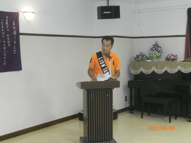| L山口会長開会ゴングと挨拶。まずは2名入会勧誘し内諾得たとの事。 |