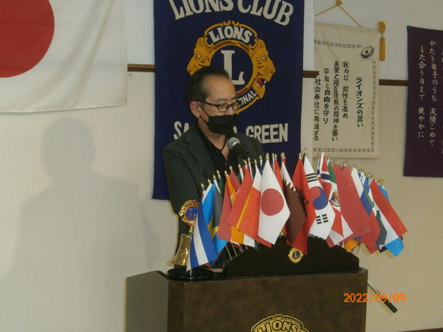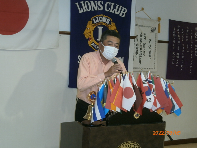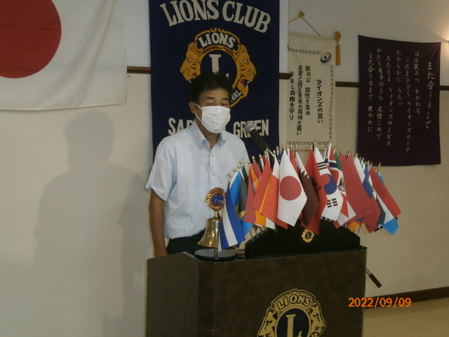 札幌グリーンライオンズクラブ9月第1例会 (通算第649回) 会長スローガン 「Let's Enjoy」 "緑を愛し、地球環境を大切に!" 2022年9月9日(金)18:15 於:三越4階ライラック 1.開会ゴング並びに会長挨拶 会長 L山口 雅徳 2.国歌「君が代」並びに「ライオンズクラブの歌」斉唱 感染防止の為、マスクを着けてお願いします。 3.”ライオンズの誓い” 感染防止の為、マスクを着けてお願いします。 4.ZC・ワークショップ終了証書の授与 会長 L山口 雅徳 2R2Z 副ZC L工藤 修 5.「ITセミナー」の報告 MC委員長 L工藤 修 6.「1・2・3 リジョンLCIFセミナー」の報告 幹事 L大塚 周雄 7.LC国際財団理事長ダグラス・アレキサンダー 日本公式訪問式典及び晩餐会の報告 L高野 倫行 8.幹事報告 幹事 L大塚 周雄 1)国際会費可決について 2)2R2Z ZC・副ZC訪問例会について 3)331A地区LCIFチャリテイーゴルフコンペの報告 4)第18回薬物乱用防止教育認定講師養成講座について 5)薬物乱用防止教育ゴールド認定証申請について 6)2022年度地区GMA活用セミナーについて 7)2022~23年度「LCIFセミナー」について 8)331A地区受け入れ可能ACTについて 9)地区献血推進セミナーについて 10)札幌ノースライオンズクラブCN20周年記念式典中止について 9.その他 1)石狩川畔自然植樹・新川植樹について 2)岡山せとうちLC合同例会の報告 10.テール・ツイスタータイム テール・ツィスター L鹿野 隆之 11.出席率の発表 会員委員長 L前田 伏樹 12.“また会う日まで”斉唱 13.ライオンズ・ローア並びに閉会ゴング 会長 L山口 雅徳 |