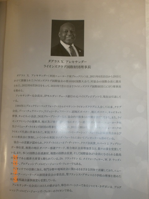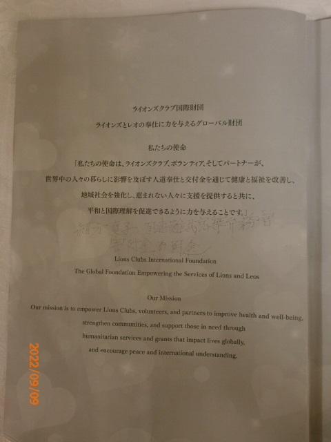 | LC国際財団理事長日本訪問式典・晩さん会出席のL高野から報告 |