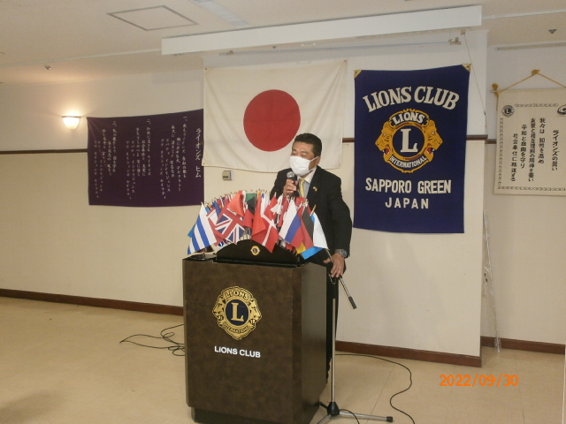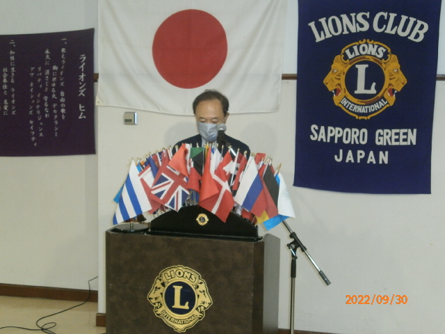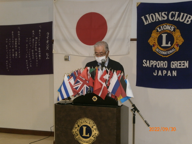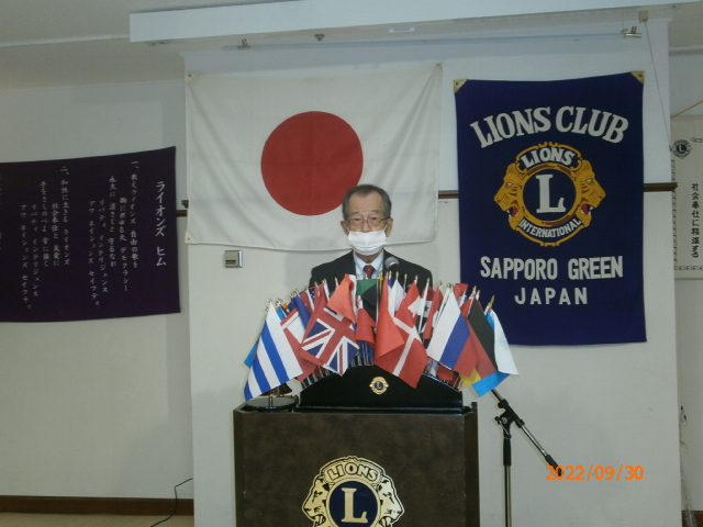 札幌グリーンライオンズクラブ9月第2例会 (通算第650回) 会長スローガン 「Let's Enjoy」 "緑を愛し、地球環境を大切に!" 2022年9月30日(金)18:30 於:三越4階ライラック 1.開会ゴング並びに会長挨拶 会長 L山口 雅徳 2.国歌「君が代」並びに「ライオンズクヒムの歌」 斉唱 3.“ライオンズの誓い”唱和 4.審議事項 1)第27回青少年意見発表大会の会場について 青少年委員長 L浅水 正 5.ニューメンバーオリエンテーション及び 幹事 L大塚 周雄 次世代リーダーシップオリエンテーションの報告 6.GMA活用セミナーの報告 会長 L山口 雅徳 7.幹事報告 幹事 L大塚 周雄 1)331A地区1R・2R・3R・6R合同招待例会について 2)石狩川自然再生植樹&新川植樹について 3)札幌ポプラLCチャリテイーゴルフコンペのお礼について 8.その他 9.テール・ツイスタータイム テール・ツィスター L鹿野 隆之 10.出席率の発表 会員委員長 L前田 伏樹 11.”また会う日まで”斉唱 12.ライオンズ・ローア並びに閉会ゴング 会長 L山口 雅徳 |