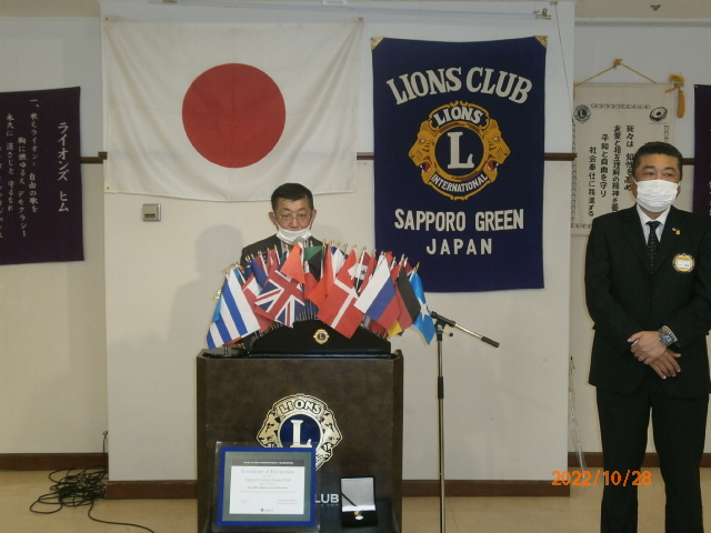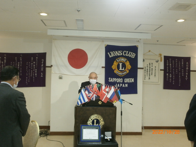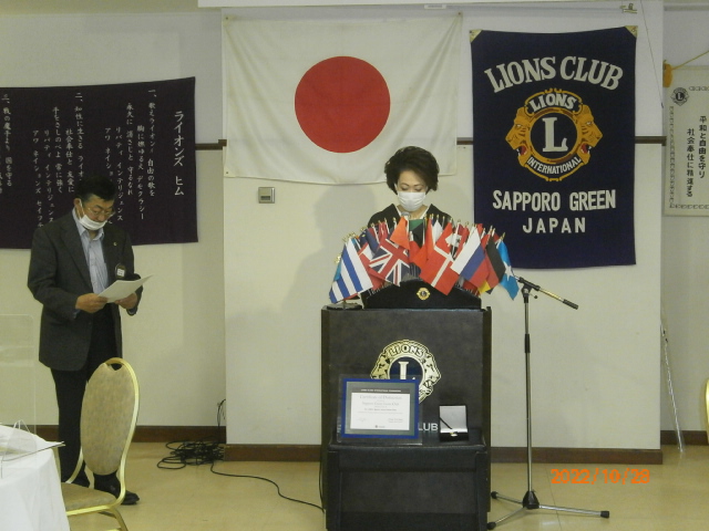 札幌グリーンライオンズクラブ10月第2例会 (2R2Z ZC訪問例会 農園部会担当 通算第652回) 会長スローガン 「Let's Enjoy」 "緑を愛し、地球環境を大切に!" 2022年10月28日(金) 18:15於:三越4階ライラック 例会冒頭L竹内テーマ―の号令で黙とう後開式しました。会の半ばL大塚幹事からL前田ご逝去を悼み、葬儀様子と喪主挨拶文紹介がありました。開会宣言、L山口会長挨拶で語られましたが4テーブルはテンション上がりました。我クラブはこの1年半でご逝去・退会により6名のLを失いました。現在の可能出席者数は19名。今回出席率68.4%と目標の70%に届きませんでしたが、久しぶりのL樋口も出席され盛会と呼んでよい状況と考えます。と言うのも前回10月第一例会は何と2テーブル、出席率44%で50%切りは記憶にない低率。その前しばらくはギリ3テーブルが当たり前でクラブの先行き不安起きるのも必然。その中、新入会員LL渡辺さやかはお仕事の関係上"賛助会員"としての入会ですが、新たな仲間の受け入れはエネルギーになりました。出席者のトーン高く笑顔が一杯。杯を高く上げシャンパンでのウィサーブも声高、お祝いのドネーション・・・。これら少人数の流れを断ち切る感じがして良かった。入会に尽力されたスポンサーL忠海、入会を後押しした薄野部会はじめサポートされた方々ありがとうございました。皆で盛り上げて行きましょう。このように書いたのには理由があり、それは現在副ZCとして2R2Zのクラブ訪問していて我クラブが最後。各クラブ訪問時それぞれの"空気"に違いを感じます。それは所属人数でなく"勢い"感じるクラブと感じないクラブ。その勢いの差はどこから出るのか?あくまで個人的意見ですが停滞でなく変わっていく事なのだろう・・・。と思っています。 1. 開会ゴング並びに会長挨拶 会長 L山口 雅徳 2.国歌「君が代」並びに「ライオンズヒムの歌」 斉唱 (マスク着でお願いします) 3.“ライオンズの誓い”唱和 (マスク着でお願いします) 新入会員入会式 進行 幹事 L大塚 周雄 新会員紹介 氏名 渡邉 さやか(わたなべ さやか) 入会年月 令和4年11月 スポンサー L忠海 健三 4.ゲストの紹介 幹事 L大塚 周雄 5.ゾーン・チェアパーソンご挨拶 第2R2Z ゾーン・チェアパーソン L菊地 慎一 6.331A地区300%メルビンジョーンズフェロークラブ受賞 会長 L山口 雅徳 7.2021年度LCIFサークルシルバーの贈呈 会長 L山口 雅徳 L高野 倫行 8.LCIFライオンズ・サポーターピンの贈呈 会長 L山口 雅徳 L前田 伏樹 L高野 倫行 9.331A地区1R・2R・3R・6R合同招待例会の報告 幹事 L大塚 周雄 10.石狩川自然再生植樹・新川チシマザクラ植樹ACT報告 環境保全委員 L堀束 恭弘 11.第2回諮問委員会の報告 会長 L山口 雅徳 12.幹事報告 幹事 L大塚 周雄 1)2023年在札37クラブ合同新年交礼会中止について 2)第59回OSEALフォーラム331A地区ツアー・日程表について 3)2022年度GST、SPC・FWT、ヘルスプロモーション委員会 合同糖尿病予防セミナー開催について 13.農園部会報告 農園部会 L忠海 健三 14.その他 11月2日(水) 寒地土木研究所チシマザクラ冬囲い 13:00〜 引き続き、寒地土木終了後に中島公園樹名板冬囲い 15.テール・ツイスタータイム テール・ツィスター L鹿野 隆之 16.出席率の発表 副会員委員長 L樋口 信弘 17.“また会う日まで”斉唱 (マスク着でお願いします) 18.ライオンズ・ローア並びに閉会ゴング 会長 L山口 雅徳 |