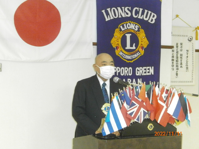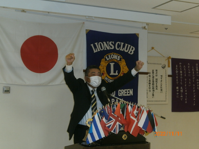 札幌グリーンライオンズクラブ11月第1例会 (ゴルフ部会担当 通算第653回) 会長スローガン 「Let's Enjoy」 "緑を愛し、地球環境を大切に!" 2022年11月11日(金)18:15 於:三越4階ライラック 1.開会ゴング並びに会長挨拶 会長 L山口 雅徳 2.国歌「君が代」並びに「ライオンズクラブの歌」 斉唱 感染防止の為、マスクを着けてお願いします。 3.”ライオンズの誓い” 感染防止の為、マスクを着けてお願いします。 4.審議事項 1)L渡邉さやか 事業委員会の所属について 幹事 L大塚 周雄 2)2023〜2024年度地区ガバナー推薦について 会長 L山口 雅徳 3)「2022年を送る家族会」の予算について 実行委員長 L帆先 久和 5.寒地土木研究所チシマザクラ冬囲いと 中島公園記念樹冬囲い報告 前会長 L工藤 修 6.ライオンズクエスト・ライフスキル教育 プログラムセミナーの報告 前会長 L工藤 修 7.マイルストーン・シェブロン・アワード贈呈 会長 L山口 雅徳 L忠海 健三 20年 8.331A地区ガバナーL松浦淳一よりMJF寄付へのお礼 会長 L山口 雅徳 故L前田 伏樹 L高野 倫行 9.メルビン・ジョーンズ・フェローアワード受賞 会長 L山口 雅徳 故L前田 伏樹 5回目 10.幹事報告 幹事 L大塚 周雄 1)2023−2024年度331A地区第二副地区ガバナー立候補について 2)2023年1月13日(金)新年例会について 11.ゴルフ部会報告 ゴルフ部会幹事 L山口 雅徳 12.その他 13.テール・ツイスタータイム テール・ツィスター L鹿野 隆之 14.出席率の発表 副会員委員長 L樋口 信弘 15.“また会う日まで”斉唱 感染防止の為、マスクを着けてお願いします。 16.ライオンズ・ローア並びに閉会ゴング 会長 L山口 雅徳 |