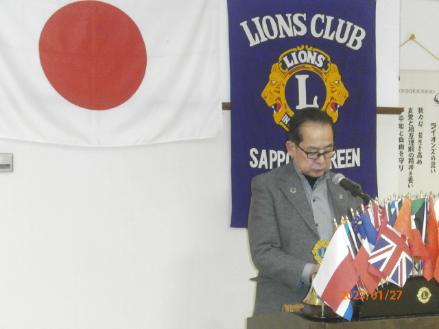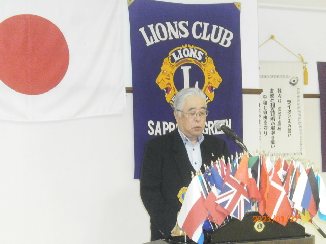 札幌グリーンライオンズクラブ1月第2例会 (通算第658回) 会長スローガン 「Let's Enjoy」 "緑を愛し、地球環境を大切に!" 2023年1月27日(金)18:00 於:三越ライラック 1. 開会ゴング並びに会長挨拶 会長 L山口 雅徳 2.国家「君が代」並びに「ライオンズヒムの歌」斉唱 3.”ライオンズの誓い”唱和 4.審議事項 1)「新年例会」決算報告について 実行委員長 L大塚 周雄 5.青少年意見発表大会実行委員会2回目と 青少年委員長 L浅水 正 高文連打合わせ報告について 6.2021〜2022年度 100/100クラブ達成受賞 会長 L山口 雅徳 全員100$以上の寄付 7.2022〜2023年度331A 特別大会報告 会長 L山口 雅徳 2023〜2025年度国際理事候補者としてL鶴嶋浩二を推薦 8.幹事報告 幹事 L大塚 周雄 1)331A地区1・2・3・6R「LCIFチャリティボーリング大会」について 2)GLT・GMTセミナーについて 3)第3回地区ガバナー諮問委員会について 4)全国アラートフォーラム2023IN東北 開催について 9.その他 青少年意見発表大会 参加Lは健康管理シートご提出に協力お願いします。 10.テール・ツイスタータイム テール・ツィスター L鹿野 隆之 11.出席率の発表 副会員委員長 L樋口 信弘 12.“また会う日まで”斉唱 13.ライオンズ・ローア並びに閉会ゴング 会 長 L山口 雅徳 |