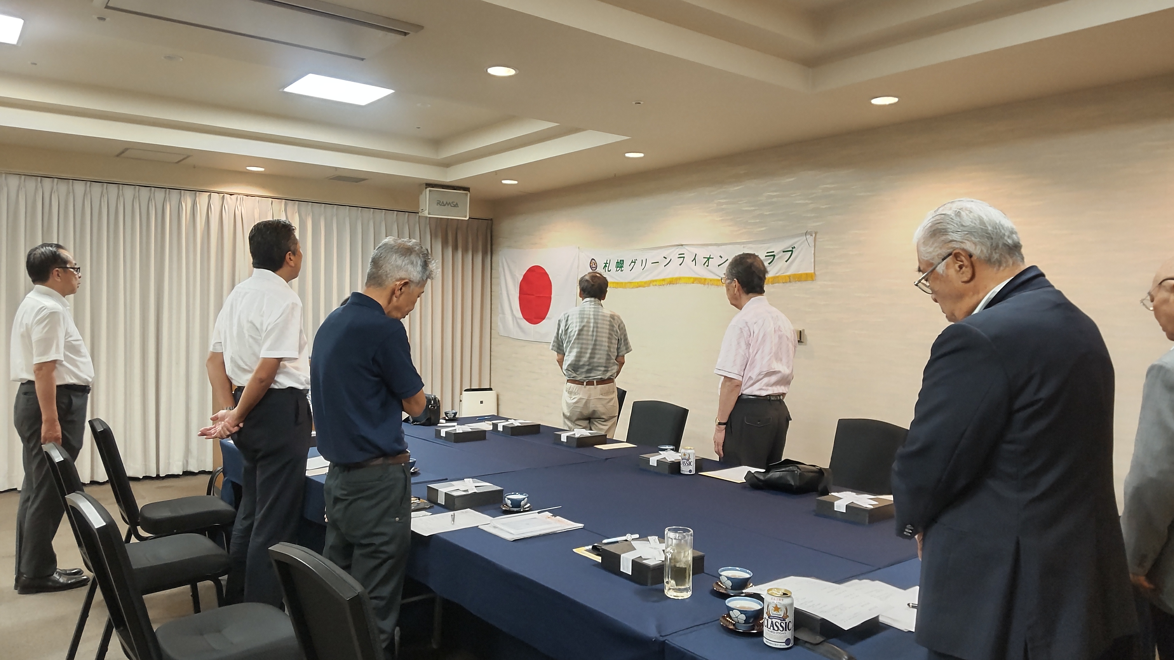 札幌グリーンライオンズクラブ7月第2例会 (事業委員会担当 通算第670回) 会長スローガン One step forward! 一歩前へウィサーブ 2023年7月28日(金)18:15於:アパホテル「サファイア」 1. 開会ゴング並びに会長挨拶 会長 L大塚 周雄 2.国歌「君が代」並びに「ライオンズクヒムの歌」斉唱 3.“ライオンズの誓い”唱和 4.事業委員会方針について 1)青少年委員会 青少年委員長 L山田 一男 2)環境保全委員会 環境保全委員長 L高野 倫行 3)社会奉仕委員会 社会奉仕委員長 L忠海 健三 5.ガバナー公式訪問の進捗報告 実行委員長 L帆先 久和 6.幹事報告 幹事 L工藤 修 1)札幌ポプラLC CN30記念式典並びに祝賀会について 2)2R2Z ゾーン・チェアパーソン訪問例会について 3)LC331−A地区 「LCIFチャリテイーゴルフコンペ」について(再度) 7.その他 1)国際大会ボストン参加報告 L高野 倫行 2)仙台LCIFセミナー報告 会長 L大塚 周雄 8.テール・ツイスタータイム テール・ツィスター L山田 一男 9.出席率の発表 会員委員長 L樋口 信弘 10.“また会う日まで”斉唱 11.ライオンズ・ローア並びに閉会ゴング 会長 L大塚 周雄 |