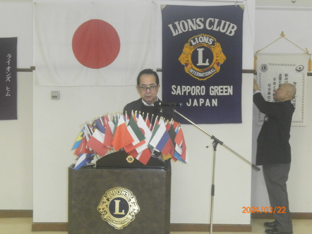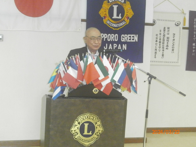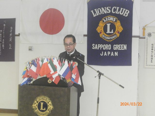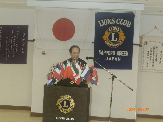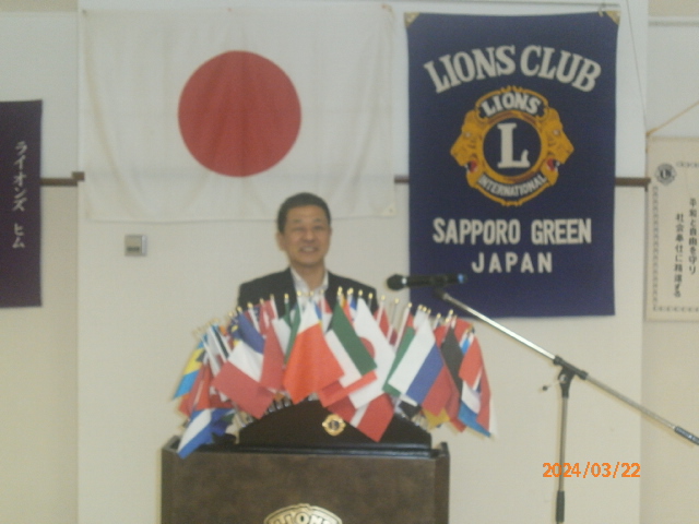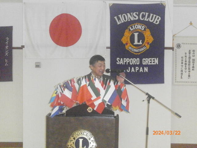 札幌グリーンライオンズクラブ3月第2例会(通算第686回) 2024年3月22日(金) 18:15 於:三越ライラック 会長スローガン One step forward! 一歩前へウィサーブ 1.開会ゴング並びに会長挨拶 会長 L大塚 周雄 2.国歌「君が代」並びに「ライオンズヒムの歌」斉唱 3.“ライオンズの誓い”唱和 4.審議事項 1)L長土居聰の退会について 幹事 L工藤 修 5.興正学園自立支援へのお礼の手紙報告について 社会奉仕委員長 L忠海 健三 6.第一回自殺予防ゲートキーパー養成講座の報告について 幹事 L工藤 修 7.幹事報告 幹事 L工藤 修 1)第70回複合地区年次大会について 2)「第70回地区年次大会開催記念 3)第70回地区年次大会献血協力について 4)札幌南LC・CN30記念式典について 5)第4回地区ガバナー諮問委員会について 6)北海道フロンティアキッズ育成事業の協力団体・企業の募集について 8.テール・ツイスタータイム テール・ツィスター L山田 一男 9.出席率の発表 会員委員長 L樋口 信弘 10.“また会う日まで”斉唱 11.ライオンズ・ローア並びに閉会ゴング 会長 L大塚 周雄 |