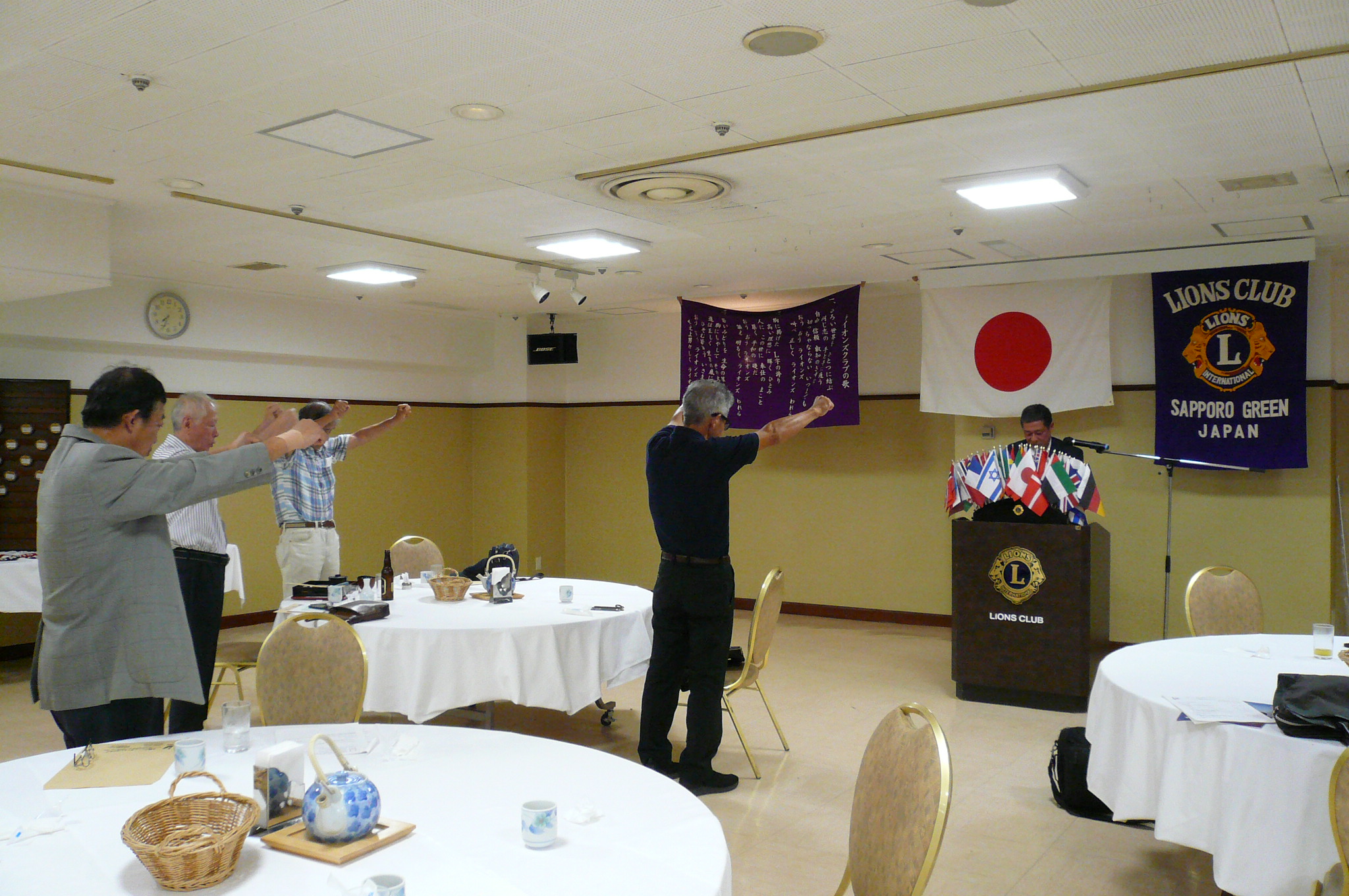 札幌グリーンライオンズクラブ7月第1例会 (通算第694回) 会長スローガン みんなの参加で充実アクト 2024年8月9日(金)18:15於:三越4階ライラック 1.開会ゴング並びに会長挨拶 会長 L帆先 久和 2.国歌「君が代」並びに「ライオンズクラブの歌」斉唱 3."ライオンズの誓い" 4. 審議事項 1)2023年7月〜2024年6月決算報告と 前会計 L甲斐 聡 2023年7月〜2024年6月剰余金の処分について 2)2023年7月〜2024年6月会計監査報告 会計監査 L比護 了造 3)331A地区 地区ガバナーL美田法賢クラブ訪問について 会長 L帆先 久和 4)2R2Z ZC L泉孝男・副ZC L山本國昭の 会長 L帆先 久和 クラブ訪問及びアクティビティ訪問について 2月9日青少年意見発表大会・4月チシマザクラ苗頒布 5)事務局パソコン買い換えについて 5.8月5日開催のセミナー報告について 1)アラート委員会セミナー 幹事 L浅水 正 6.幹事報告 幹事 L浅水 正 1)札幌時計台LC CN45式典開始時間変更について 2)ECHO誌 期末特別号の発行について 3)札幌レ・リアンLCチャリティーゴルフ大会について 4)合同事務局のリソグラフ更新年間保守料について 7.その他 1)8月26日(月)ガバナー公式訪問のクラブ旗持ち込みについて 2)キャビネット事務局夏季休暇について 8.テール・ツイスタータイム テール・ツィスター L山本 弘詔 9.出席率の発表 会員委員長 L山口 雅徳 10."また会う日まで"斉唱 11.ライオンズ・ローア並びに閉会ゴング 会長 L帆先 久和 |