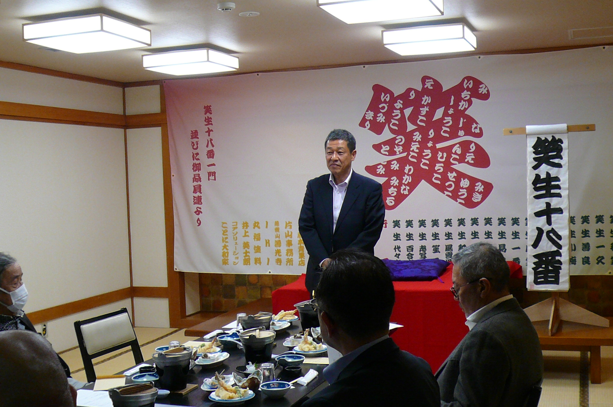 札幌グリーンライオンズクラブ11月第2例会 (社会奉仕委員会担当 落語例会 通算第702回) 会長スローガン みんなの参加で充実アクト 2024年11月22日(金)18:30於:琴似大和家 1.開会ゴング並びに会長挨拶 会長 L帆先 久和 2."ライオンズの誓い"唱和 3.幹事報告 幹 事 L浅水 正 1)2025年在札37LC合同新年交礼会について 4.ゲストのご紹介 札幌わかばLCより2R2Z ZC L泉 孝男様 事務局 後藤 暢子様 ご子息様 第二部 落語 司会進行 副実行委員長 L山田一男 1.実行委員長挨拶 L浅水 正 2.笑生十八番(しょうせいおはこ)師匠 5.その他 ・L高野倫行よりMJF基金へドネーションいただきました。 6.テール・ツイスタータイム テール・ツィスター L山本 弘詔 7.出席率の発表 会員委員長 L山口 雅徳 8.ライオンズ・ローア並びに閉会ゴング 会長 L帆先 久和 |