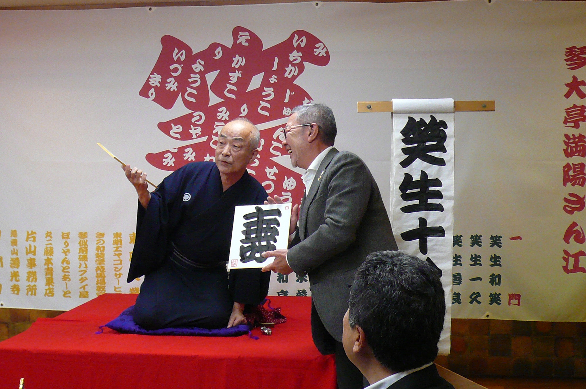 落語文字色紙を頂くゲストL泉孝男ZC |