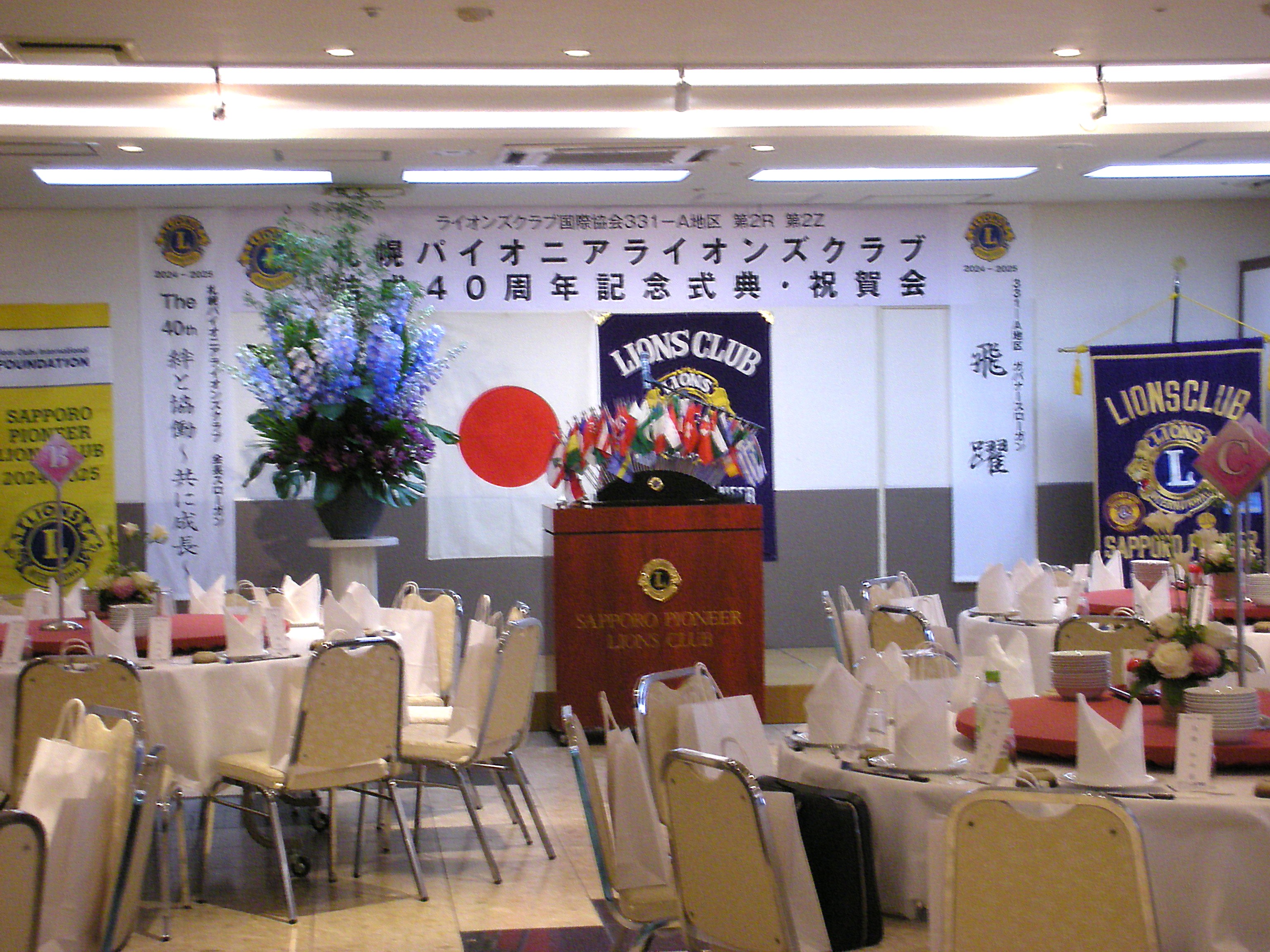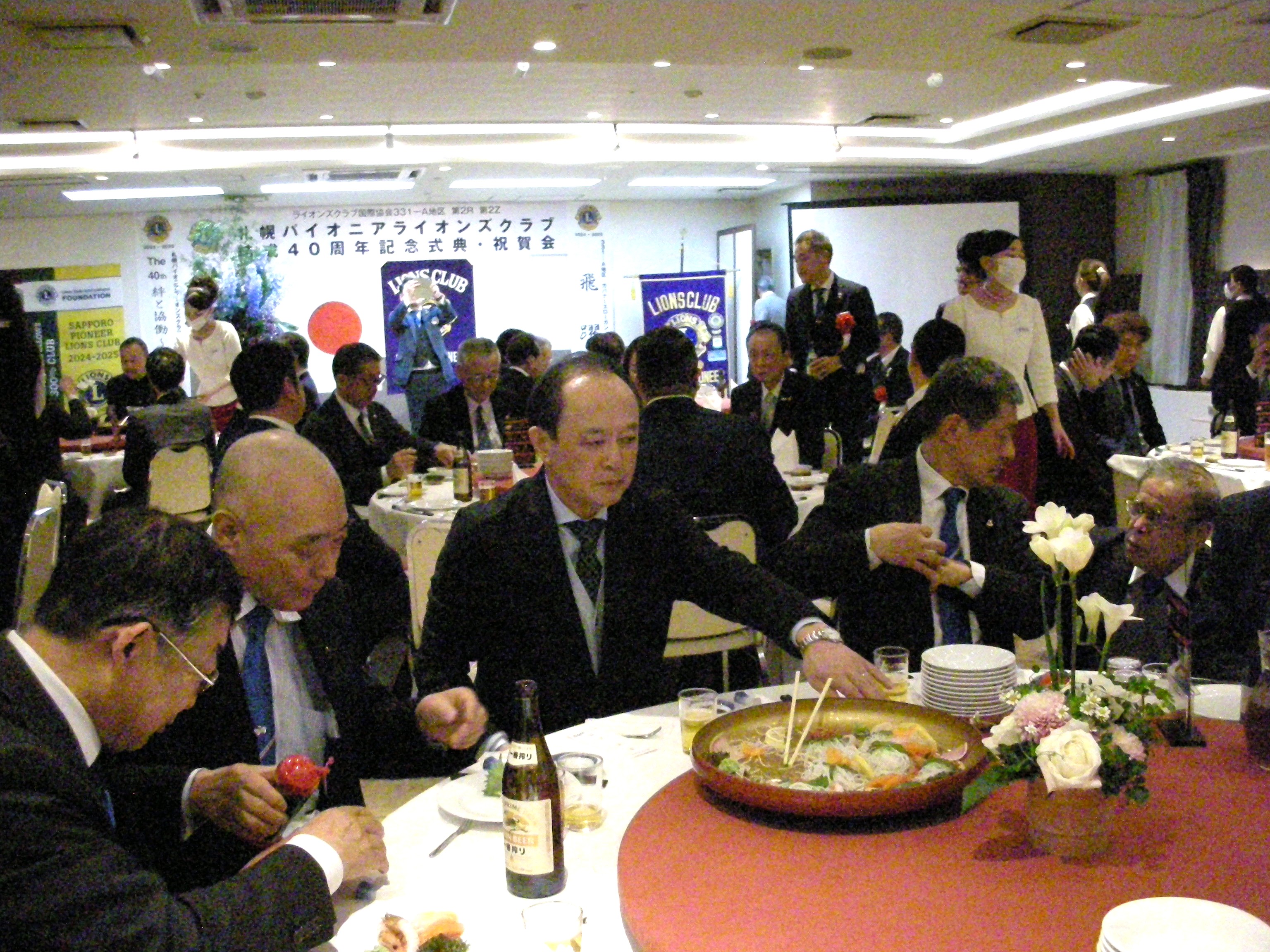 札幌グリーンライオンズクラブ3月第1例会振替(通算第709回) 会長スローガン みんなの参加で充実アクト 3月第一例会振替3月11日(火)会場 ホテルユキタ17:00 札幌パイオニアライオンズクラブの結成40周年記念式典及び祝賀会に、当クラブよりL浅水、L大塚、L工藤、L高野、L忠海、L帆先、L山口、L山本で出席してきました。 出席者約95名の式典でございました。 道新・TVでも取り上げられました、「第4回札幌パイオニアライオンズクラブ ワールドプレミア野球大会U12」で、能登半島地震で被災されました、輪島市少年野球チーム「輪島フェニックス」を招待して行ったアクティビティの放映などが印象的でした。 札幌パイオニアライオンズクラブ結成40周年記念式典 1 開会宣言並びに開会 ゴング 2.「国歌」並びIこ 「ライオンズクラブ」の歌 斉唱 3.ライオンズの誓い唱和 4.ご来賓・地区役員のご紹介 5.参加クラブのご紹介 6.式 辞 7.祝 辞 8.御 礼 9.記念アクティビティの発表 10.感謝状拝受 11.閉会宣言並びに閉会ゴング 記念祝賀会 1.開宴のことば 2. We Serve 3.祝 宴 4.また逢う日まで 斉唱 5.ライオンズロアー 6.閉宴のことば |