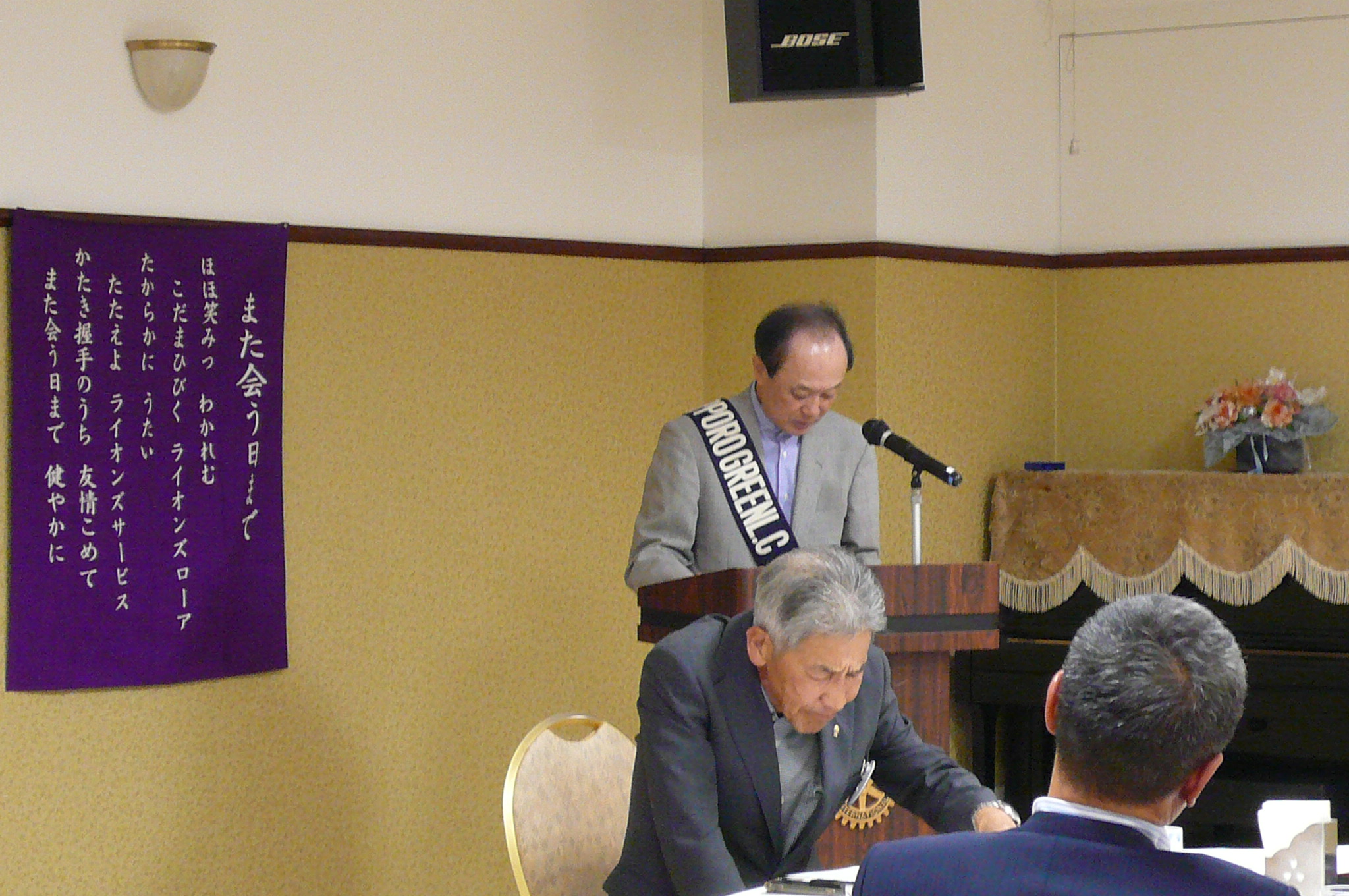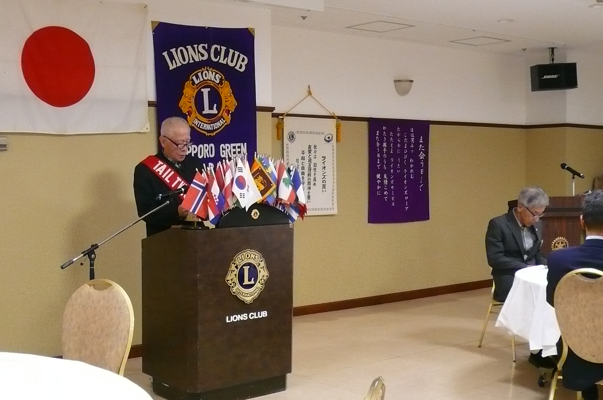 札幌グリーンライオンズクラブ10月第1例会(通算第723回)) 会長スローガン 現状を把握してウィサーブ 2025年10月10日(金)18:15於:三越4階ライラック 1.開会ゴング並びに会長挨拶 会長 L甲斐 聡 2.国歌「君が代」並びに「ライオンズクラブの歌」 斉唱 3."ライオンズの誓い" 4. 審議事項 1)特別例会社会福祉例会及び 実行委員長 L山田 一男 ZC・訪問例会(9月26日)決算について 2)青少年意見発表大会予算案と記念講演及び 幹事 L大塚 周雄 LCIFシェアリング交付金の用途について 5.屯田西公園補植作業について 環境保全委員長 L工藤 修 6.糖尿病予防啓発&環境保全アクティビティ 環境保全委員長 L工藤 修 「ゴミ拾いウオーキング」参加報告について 7.幹事報告 幹 事 L大塚 周雄 1)札幌ノースLCカップ第2回U10小学生アイスホッケー大会の御礼 2)第62回OSEALフォーラム札幌「ペットボトルキャップアートでギネスに挑戦!」 のボランティア協力について 3)OSEALフォーラム札幌組織委員会より 4)2025‐2026年度 LCIFセミナー報告について 5)第62回OSEALフォーラム札幌 北海道特別支援学校パラスポーツプログラムと 公益財団法人日本ライオンズ展示ブースについて 6)第21回薬物乱用防止教育認定講師養成講座のご案内について 7)第3回LCIF写真コンテストについて 8)第2回地区ガバナー諮問委員会について 8.その他 9.テール・ツイスタータイム テール・ツィスター L山田 一男 10.出席率の発表 会員委員長 L浅水 正 11."また会う日まで"斉唱 12.ライオンズ・ローア並びに閉会ゴング 会長 L甲斐 聡 |